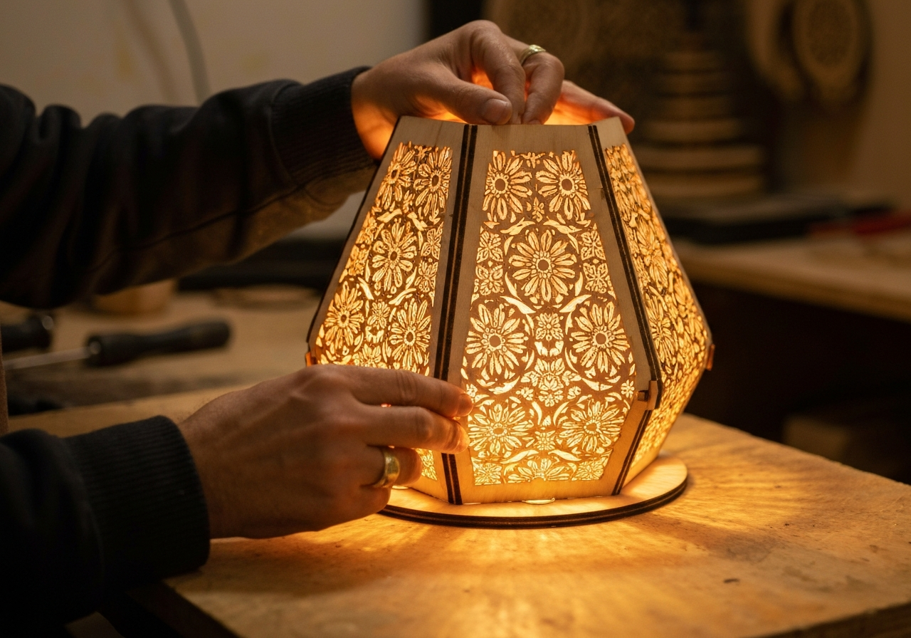 Chaque luminaire Woodenglow est le fruit d'une technologie de pointe et d'un savoir-faire artisanal. MDF premium, découpe laser précise, zéro déchet, design qui ne se démode jamais.